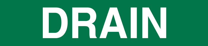 Durable, self-adhesive VynMark™ DRAIN Green/White Printed pipe markers for fast, compliant identification in industrial and commercial facilities.